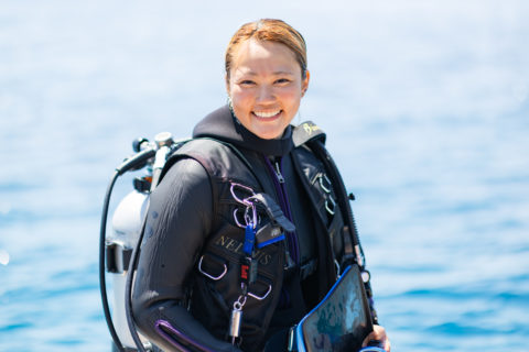 「スタッフのみんなもすごくフレンドリーで、何より教え方が適切で分かりやすい!初めてなのに、とても安心して潜ることができました。しかも写真が上手。他にも色々なショップに行ったことがあるのですが、ここまで丁寧に教えてくれるところはなかなかないと思います。」by 福田香織様